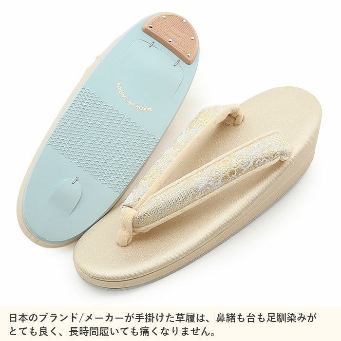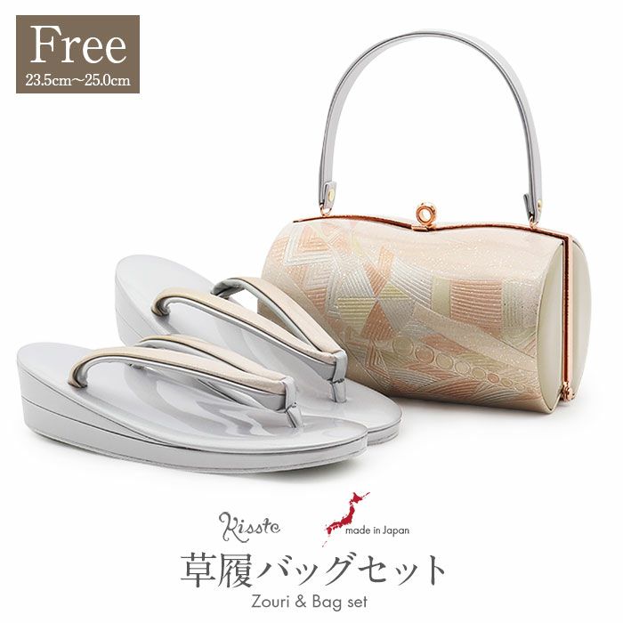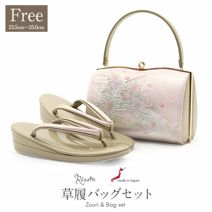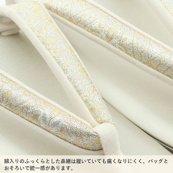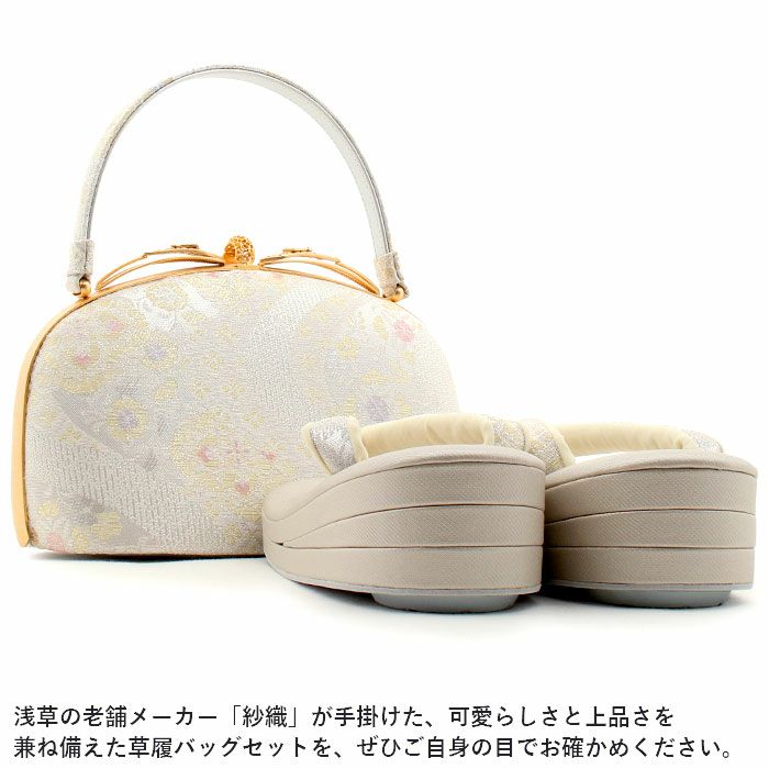 痛くなくて歩きやすい、初めての方にも安心の履き心地 草履バッグセット 留袖用 訪問着用 華三彩 キステオリジナル Sサイズ Mサイズ Lサイズ LLサイズ ゴールド シャンパンゴールド シルバー 吉祥紋 織り生地 2枚芯 日本製