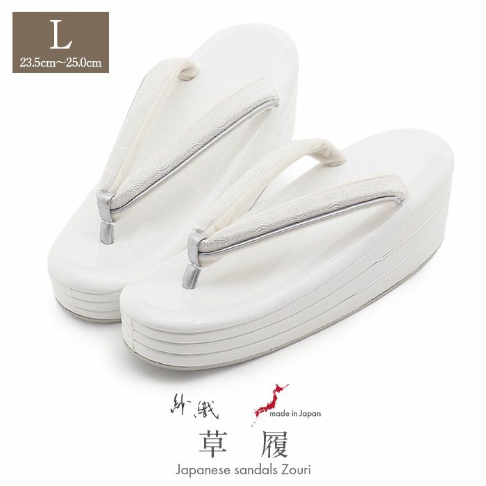 ≪在庫限り≫ 結婚式の黒留袖 色留袖や訪問着に 草履 留袖用 訪問着用 レディース 紗織 沙織 L ホワイト 波紋 波 合皮 3枚芯 かかと高め 日本製 黒留袖 色留袖 礼装用 フォーマル 結婚式