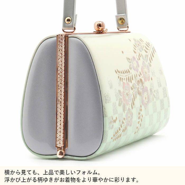 ≪在庫限り≫ 結婚式の黒留袖 色留袖や訪問着に 草履バッグセット 留袖用 訪問着用 草履バッグ フリー L アイボリー ライトパープル 白 薄紫 花 市松 エナメル 1の2枚芯 日本製
