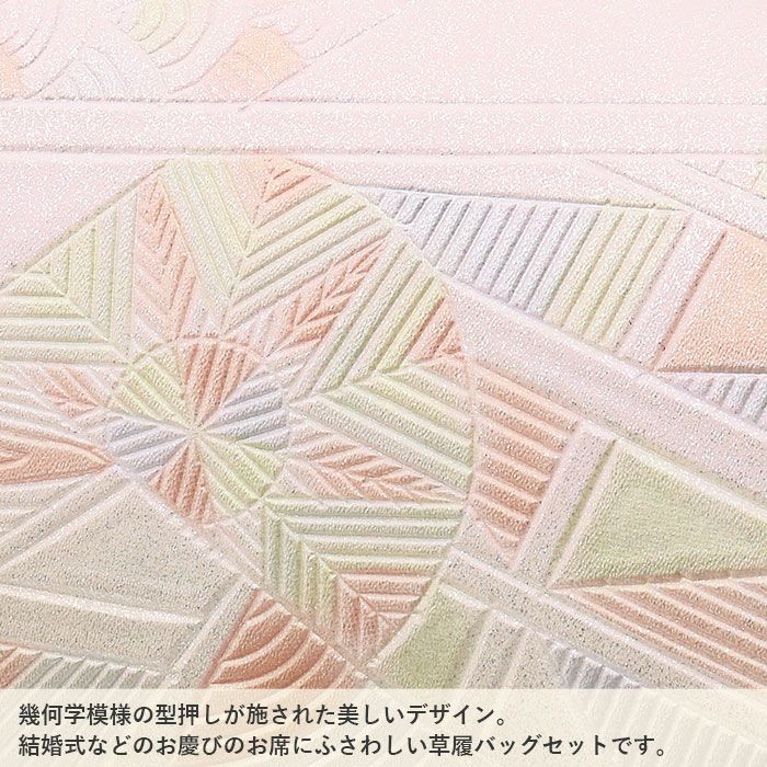 ≪在庫限り≫ 結婚式の黒留袖 色留袖や訪問着に 草履バッグセット 留袖用 訪問着用 草履バッグ フリー L ピンク ゴールド 幾何学 型押し エナメル 1の2枚芯 日本製