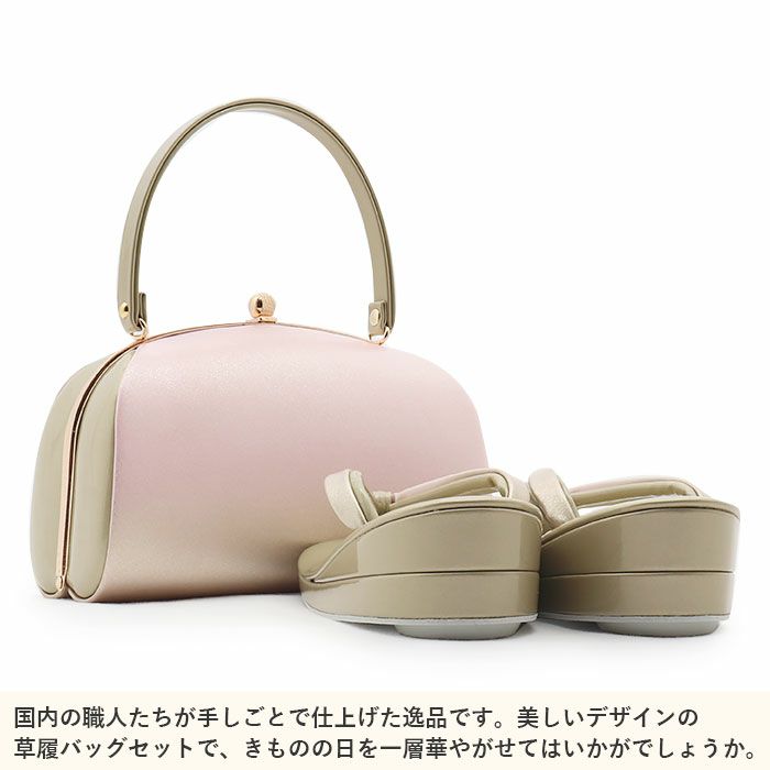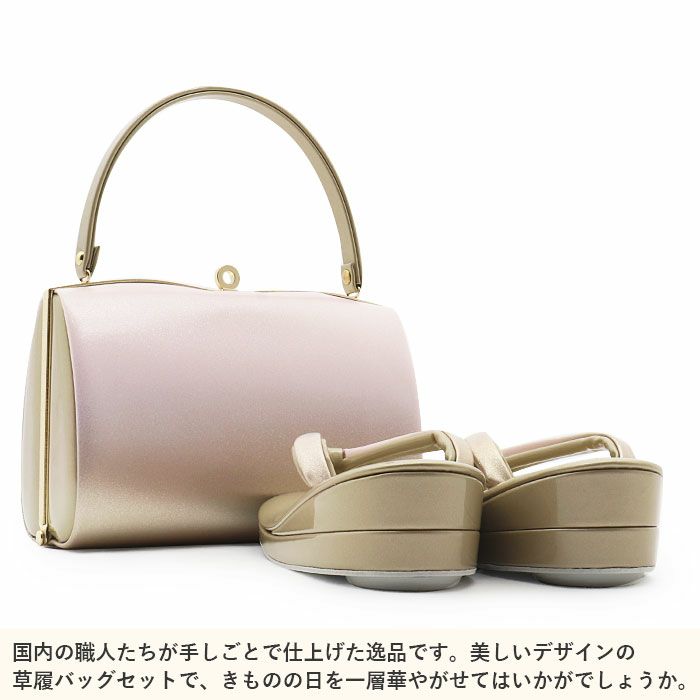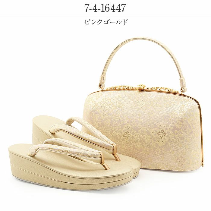 ≪在庫限り≫ 結婚式の黒留袖 色留袖や訪問着に 草履バッグセット 留袖用 訪問着用 草履バッグ 世美庵 L ゴールド ピンク 白 花菱 花文 帯地 3枚芯 優花緒 日本製