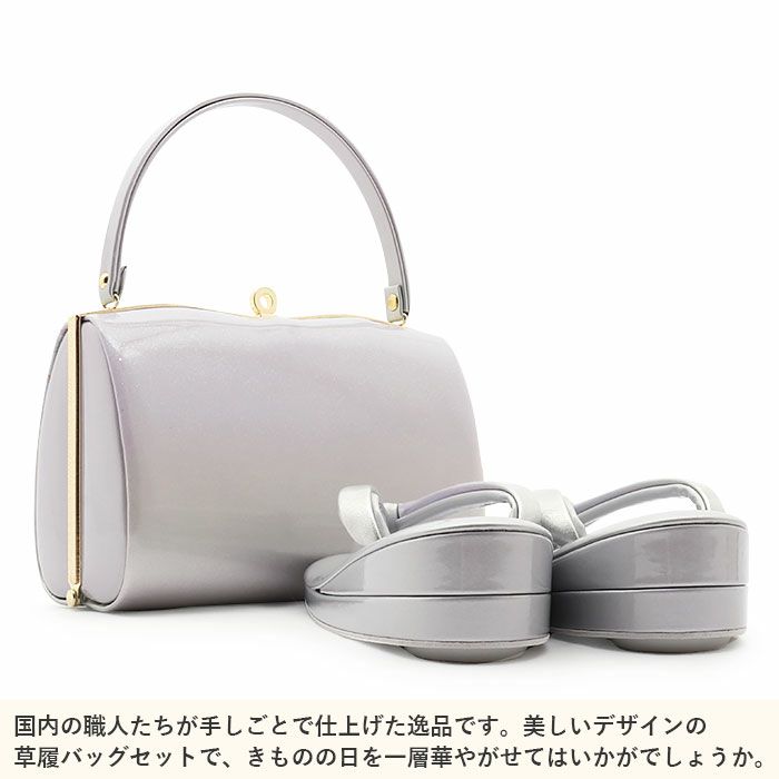 ≪在庫限り≫ 結婚式の黒留袖 色留袖や訪問着に 草履バッグセット 留袖用 訪問着用 草履バッグ フリー L ライトパープル ライトゴールド シルバー 薄紫 薄金 銀 華紋 桜 熨斗 流水 エナメル 1の2枚芯 日本製