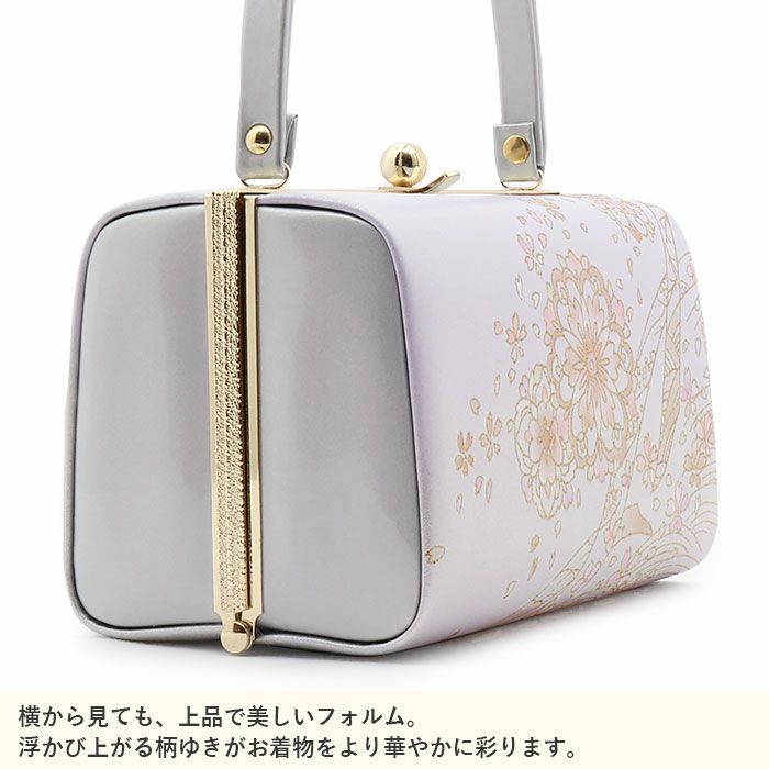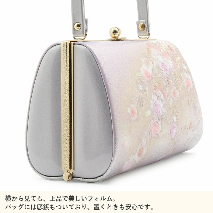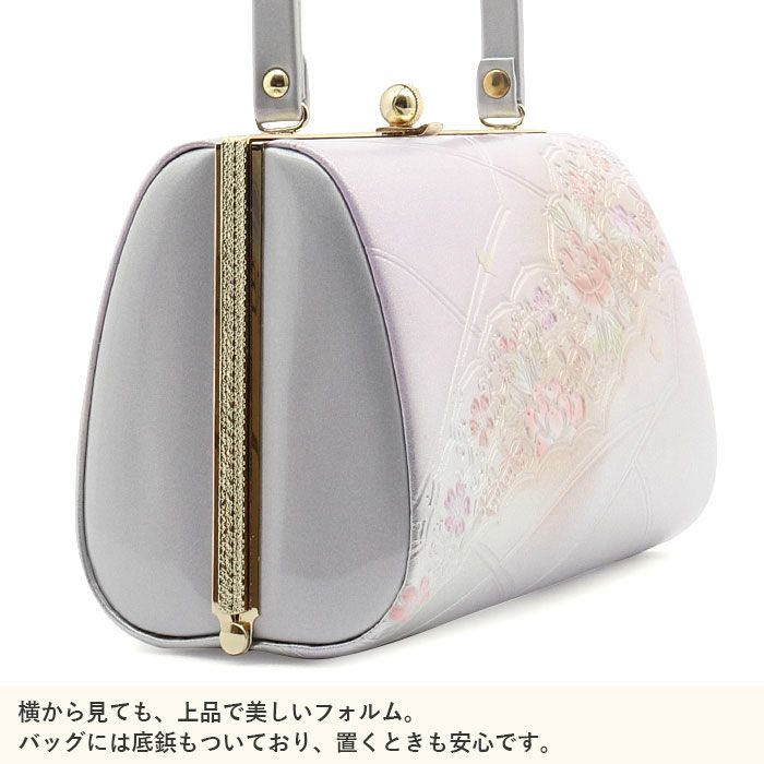 ≪在庫限り≫ 結婚式の黒留袖 色留袖や訪問着に 草履バッグセット 留袖用 訪問着用 草履バッグ フリー L ライトパープル シルバー 薄紫 薄金 銀 桜 扇 流水 エナメル 1の2枚芯 日本製