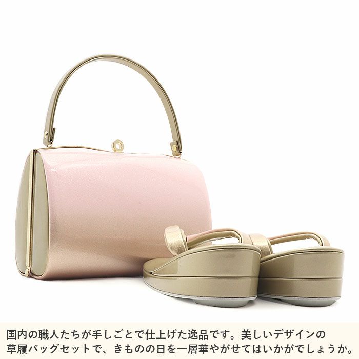 ≪在庫限り≫ 結婚式の黒留袖 色留袖や訪問着に 草履バッグセット 留袖用 訪問着用 草履バッグ フリー L ピンク ゴールド 桜 扇 流水 エナメル 1の2枚芯 日本製
