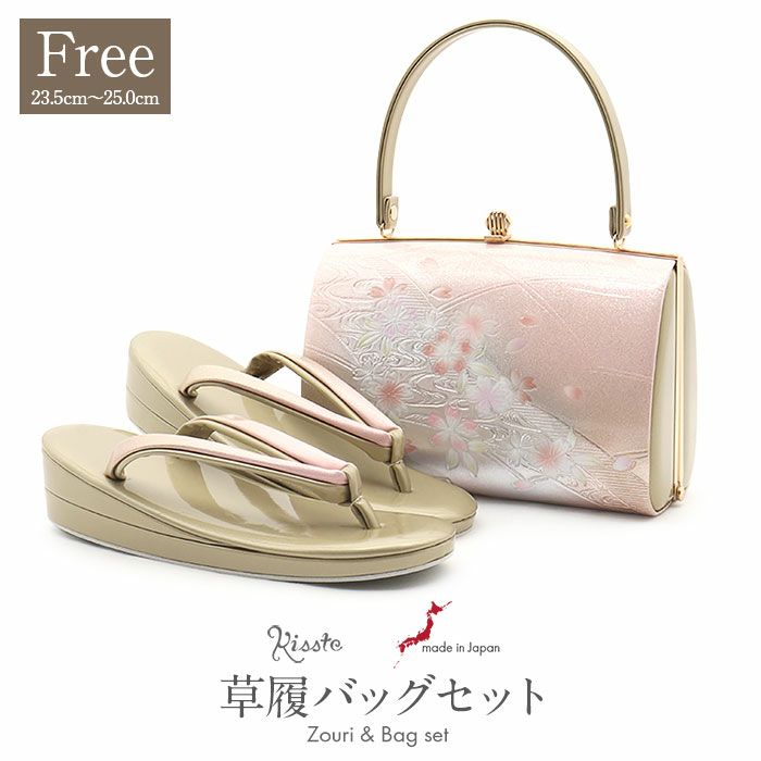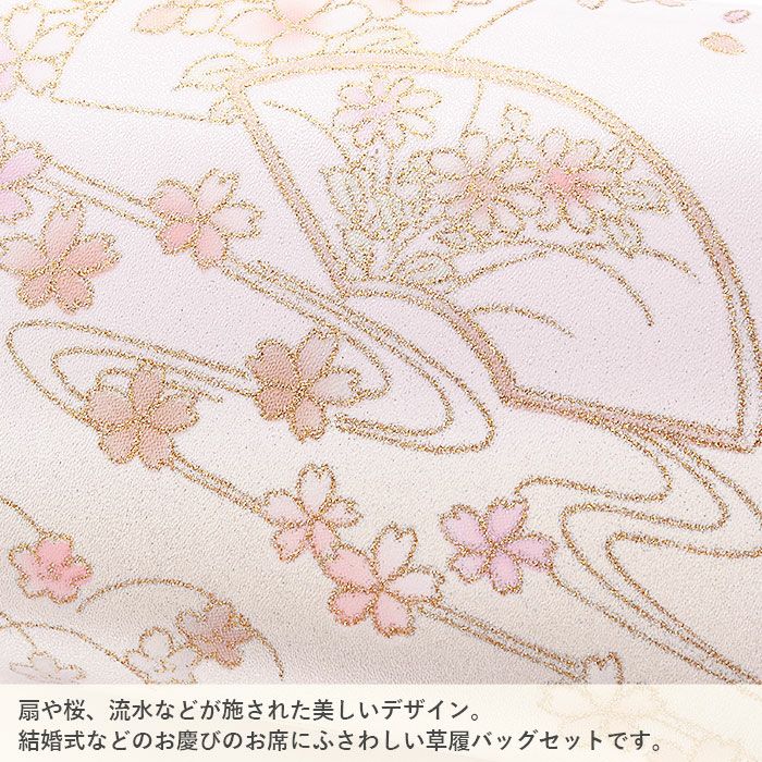 ≪在庫限り≫ 結婚式の黒留袖 色留袖や訪問着に 草履バッグセット 留袖用 訪問着用 草履バッグ フリー L ピンク ライトゴールド シルバー 薄桃 薄金 銀 桜 扇 流水 エナメル 1の2枚芯 日本製