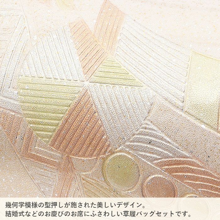 ≪在庫限り≫ 結婚式の黒留袖 色留袖や訪問着に 草履バッグセット 留袖用 訪問着用 草履バッグ フリー L ライトオレンジ ゴールド シルバー 幾何学 型押し エナメル 1の2枚芯 日本製