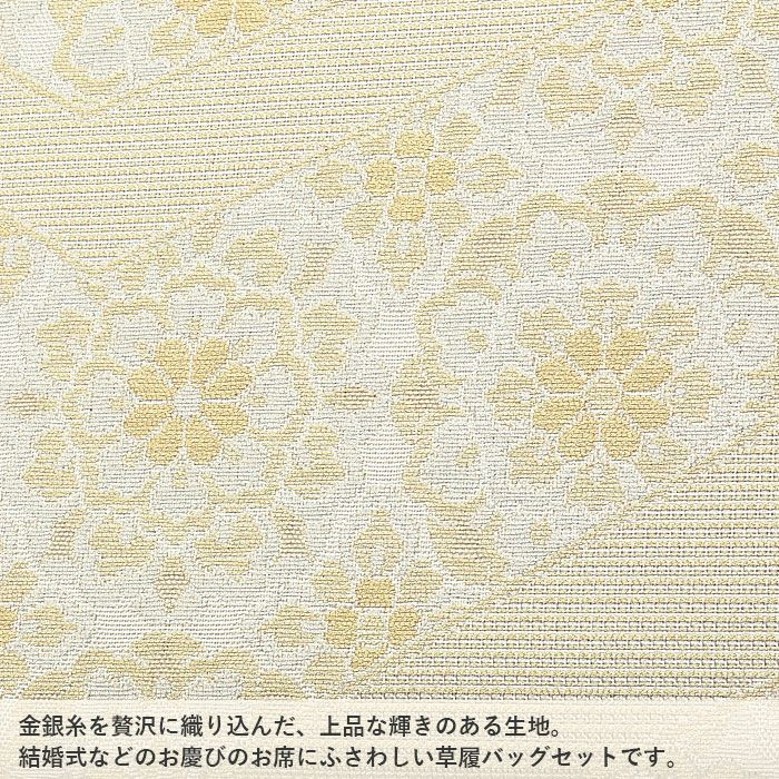 草履バッグセット 礼装用 <世美庵> Lサイズ 正絹袋帯地 <ゴールド/桜と辻ヶ花> 日本製