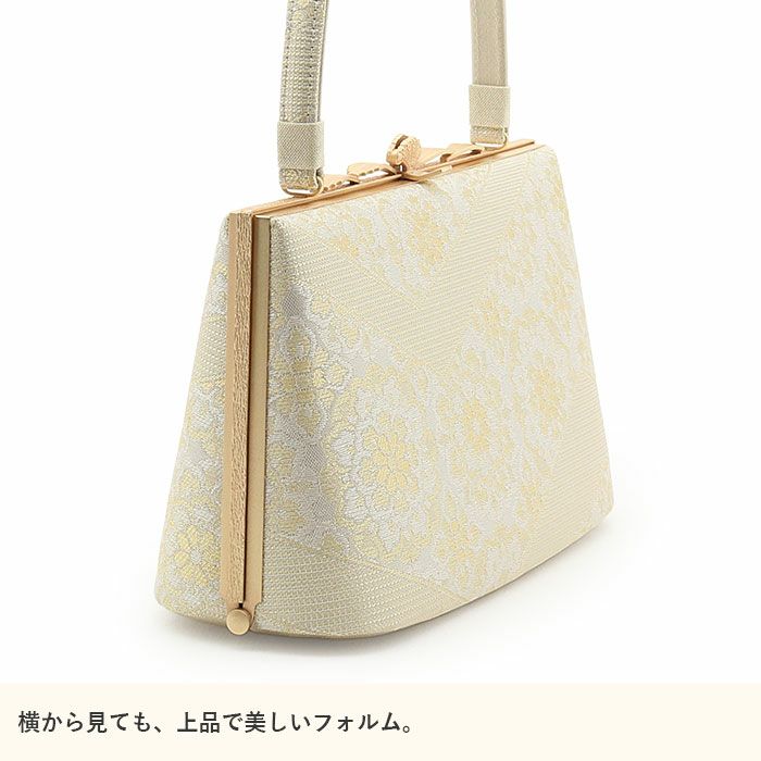 こだわりの利休バッグで上品な着物姿を演出 利休バッグ 留袖用 訪問着用 アイボリー オレンジ ゴールド 白梅 うめ 正絹帯地 日本製