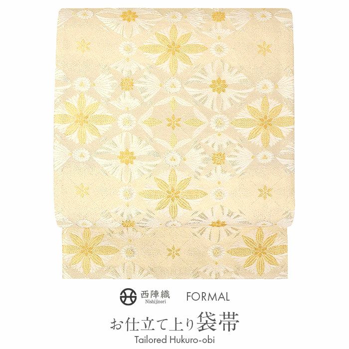 袋帯 帯 留袖 訪問着 <シャンパンゴールド、シルバー/変わり花菱> 西陣織 正絹 <浅田叡一織物> 仕立て上がり