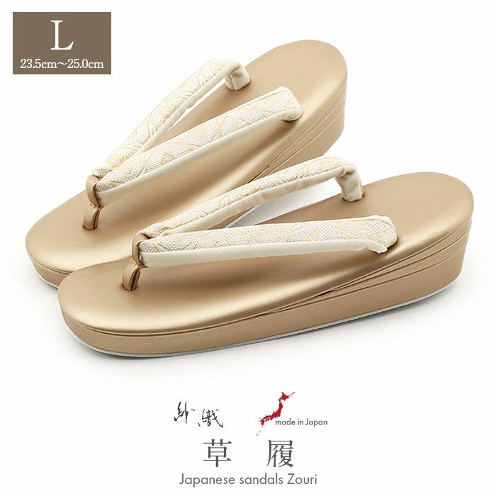痛くなく歩きやすい、初めての方にも安心の履き心地 草履 留袖 訪問着 礼装用 レディース Lサイズ ゴールド 金 エナメル 型押し 牡丹 金銀たたき 2の3枚芯 日本製 優花緒