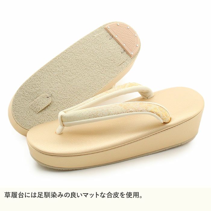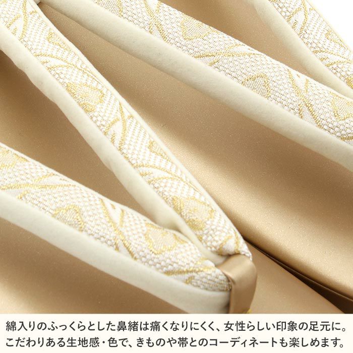 痛くなく歩きやすい、初めての方にも安心の履き心地 草履 留袖 訪問着 礼装用 レディース Sサイズ 小さい 薄金 金 本革 本皮 型押し 螺鈿細工 辻が花 金銀たたき 2の3枚芯 日本製 二石花緒 優花緒