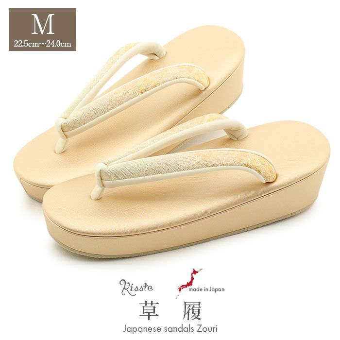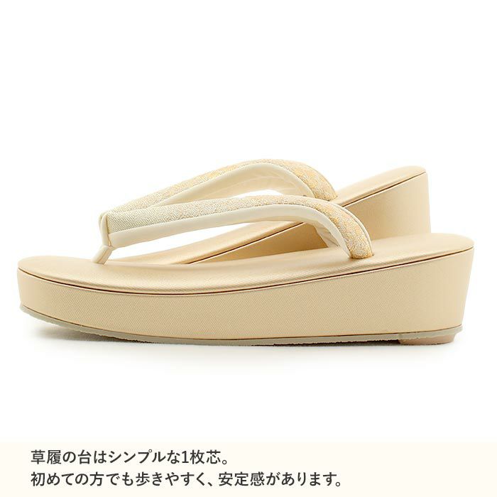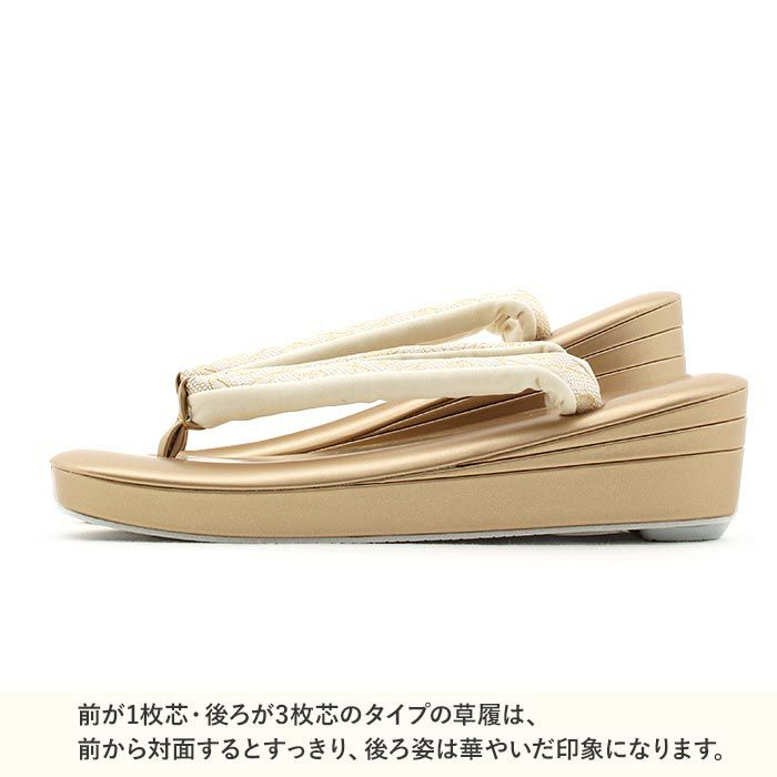 痛くなくて歩きやすい、初めての方にも安心 草履 留袖用 訪問着用 レディース Mサイズ ゴールド 金 合皮 1枚芯 日本製 痛くない 歩きやすい