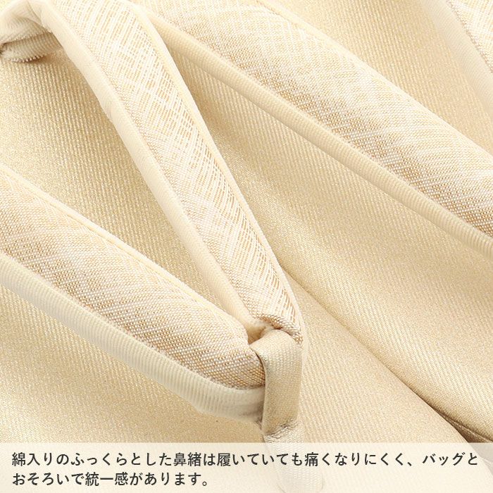 痛くなく歩きやすい、初めての方にも安心の履き心地 留袖用草履バッグセット 訪問着用 紗織 沙織 Lサイズ 金 クリーム 銀 白 花紋 ラインストーン 西陣織 正絹 帯地 2・3枚芯 日本製