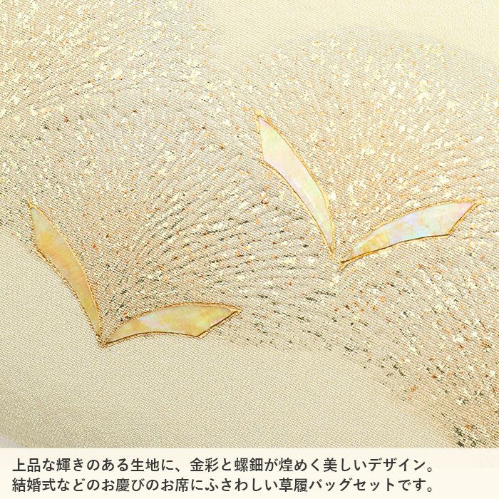 結婚式の訪問着に合わせたい 草履バッグセット。 草履バッグセット 礼装用 フリー Lサイズ クリーム リーフ 合皮型押し 1枚芯 日本製