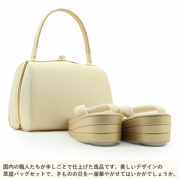 草履バッグセット 留袖用 訪問着用 <紗織> Sサイズ Mサイズ Lサイズ LLサイズ フリーサイズ 日本製 <ゴールド/華紋>