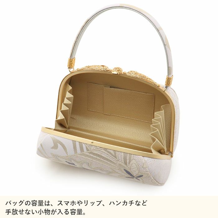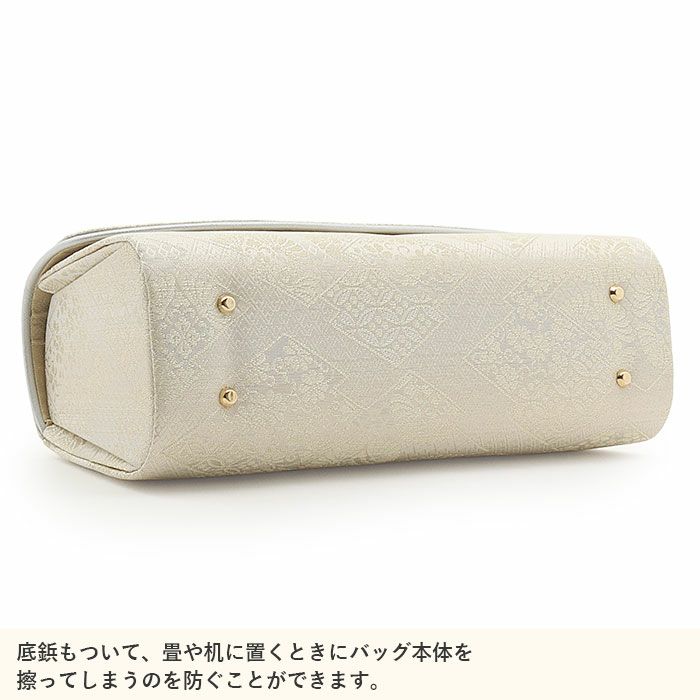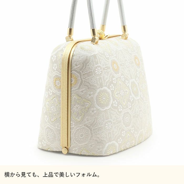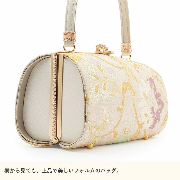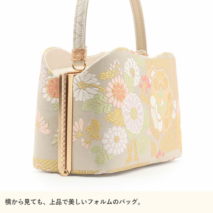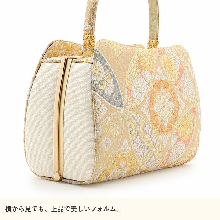 利休バッグ <クリーム&ゴールド/雪輪華紋> 正絹帯地 日本製高級バッグ