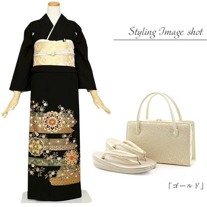 黒留袖 草履 バッグセット 留袖 訪問着 華三彩 Sサイズ Mサイズ Lサイズ LLサイズ 唐草 金彩織 日本製