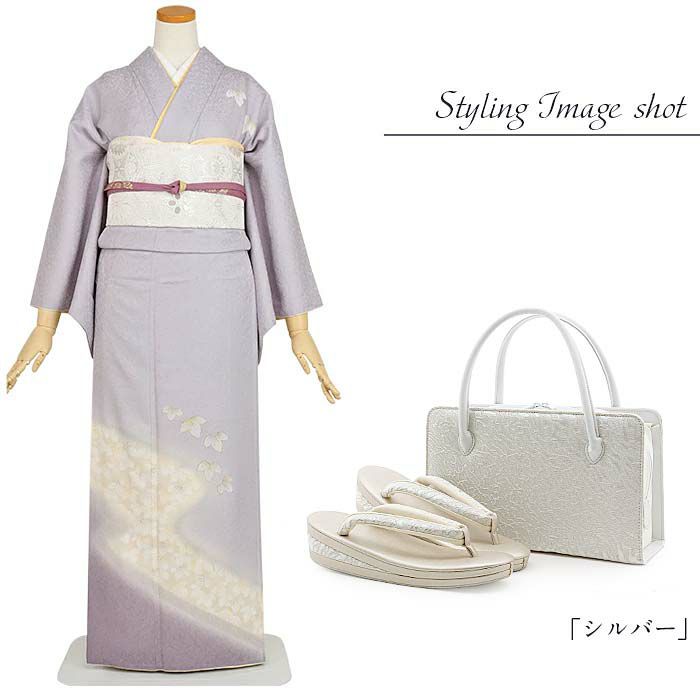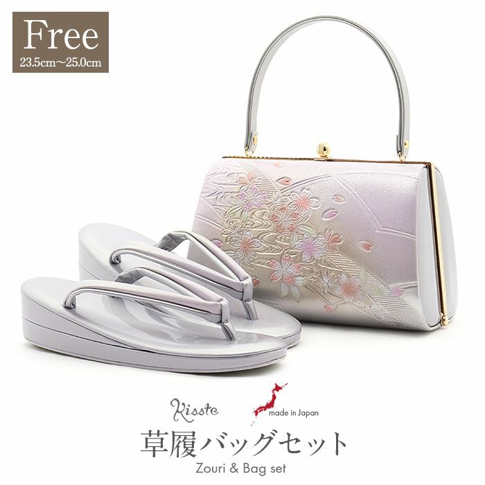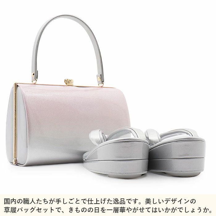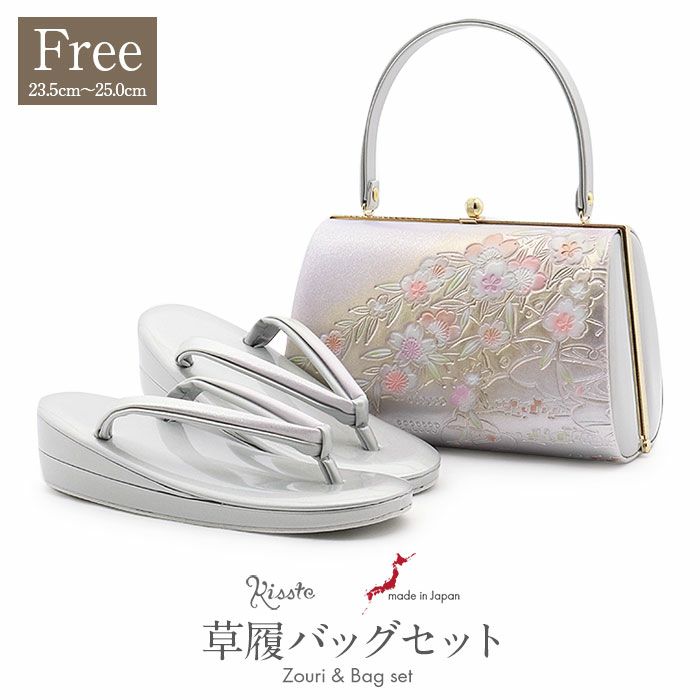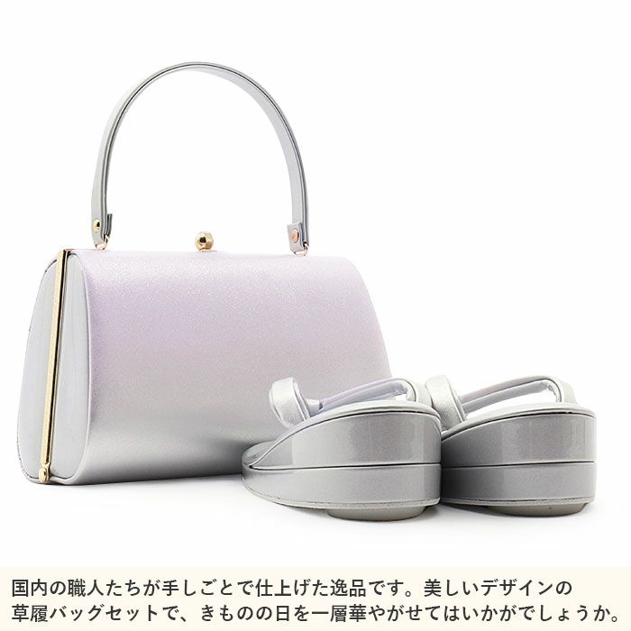 草履バッグセット 留袖用 訪問着用 <紗織> Sサイズ Mサイズ Lサイズ LLサイズ フリーサイズ 日本製 <シルバー/小花>