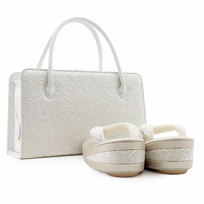 ≪在庫限り≫ 結婚式の黒留袖 色留袖や訪問着に 草履バッグセット 留袖用 訪問着用 草履バッグ 世美庵 華三彩 L クリーム シルバー 銀 アイボリー コード刺? 2枚芯 優花緒 正絹袋帯地 日本製
