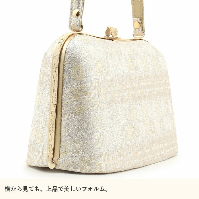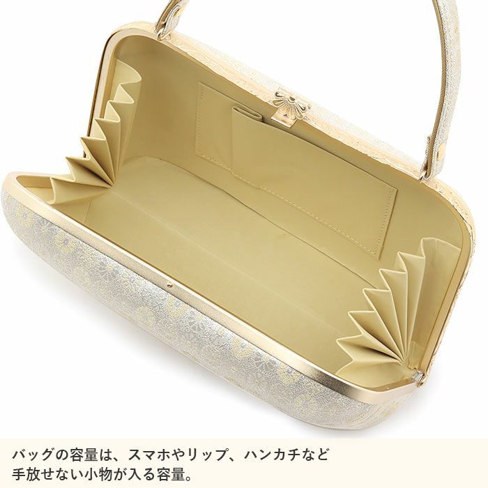 浮かび上がる唐花模様が上品な着物姿を演出 留袖 バッグ 訪問着用 礼装 岩佐謹製 唐花模様 フォーマルバッグ ゴールド シルバー 金 銀 綴れ織 日本製