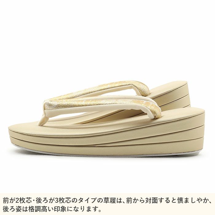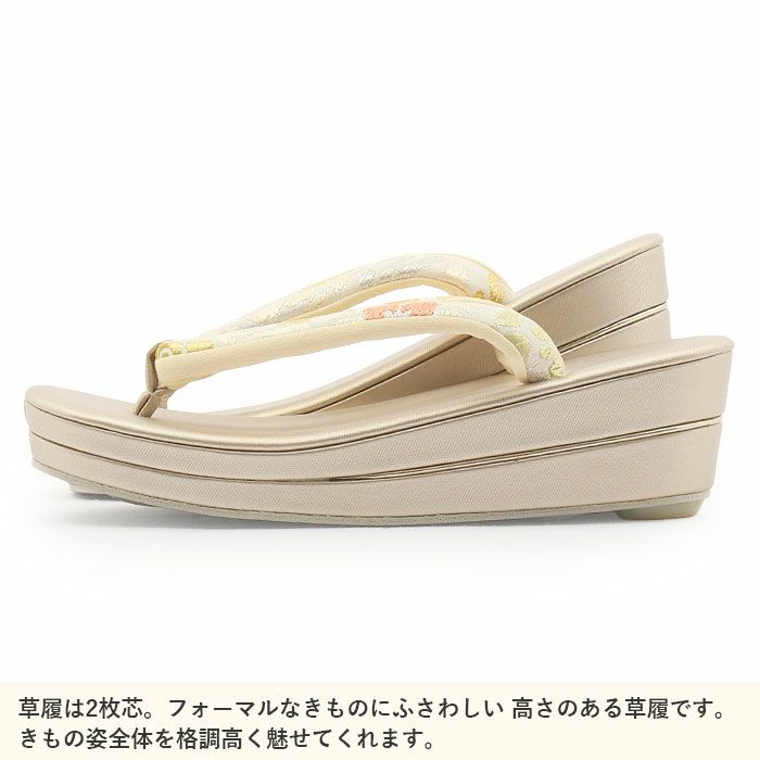 ≪在庫限り≫ 結婚式の黒留袖 色留袖や訪問着に 草履 留袖用 訪問着用 レディース 紗織 沙織 L クリーム ゴールド 立涌 花文 合皮 3枚芯 かかと高め 日本製 黒留袖 色留袖 礼装用 フォーマル 結婚式
