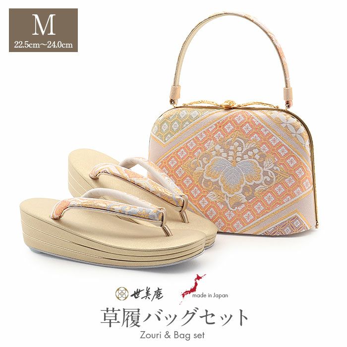 ≪在庫限り≫ 結婚式の黒留袖 色留袖や訪問着に 草履バッグセット 留袖用 訪問着用 草履バッグ 世美庵 M ゴールド アイボリー ピンク 菱 桐 亀甲 帯地 3枚芯 優花緒 日本製