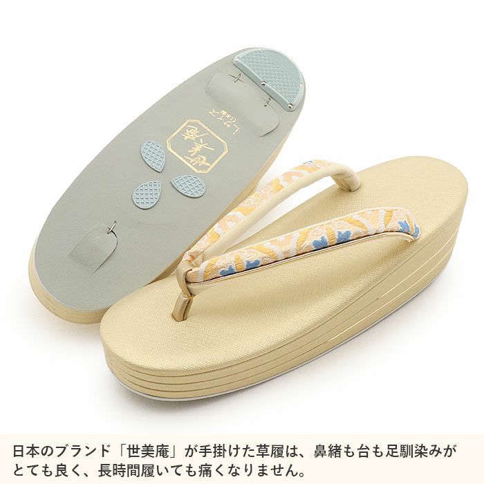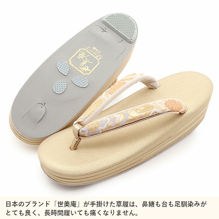 痛くなくて歩きやすい、初めての方にも安心の履き心地 草履バッグセット 成人式 振袖用 世美庵 Sサイズ Mサイズ Lサイズ LLサイズ 万寿菊 桜 振袖帯地 3枚芯 日本製
