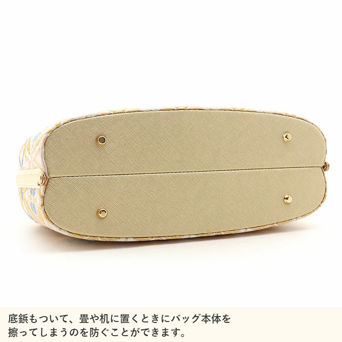利休バッグ <クリーム&ヒワ/扇面菊唐草> 正絹帯地 日本製高級バッグ