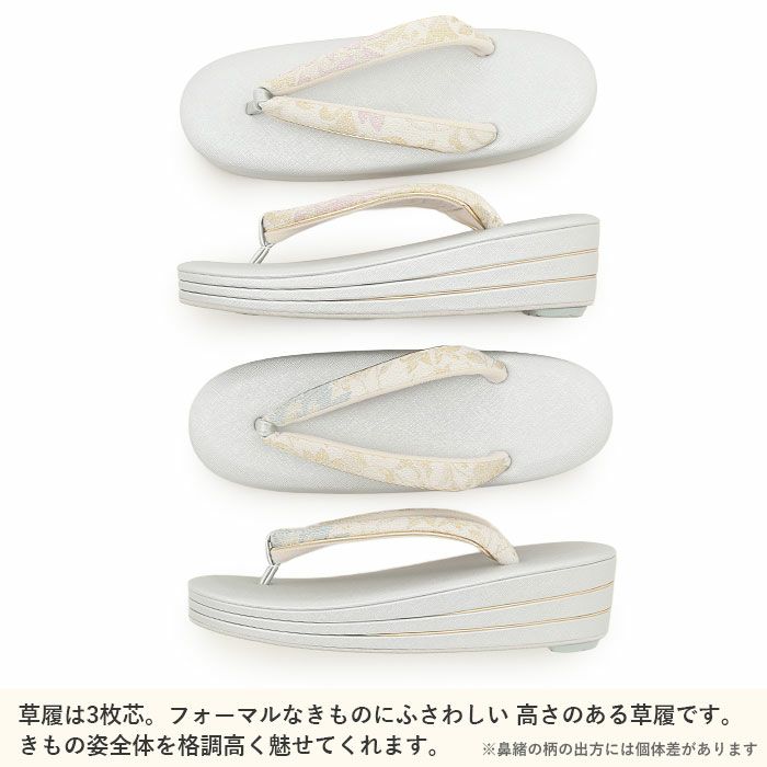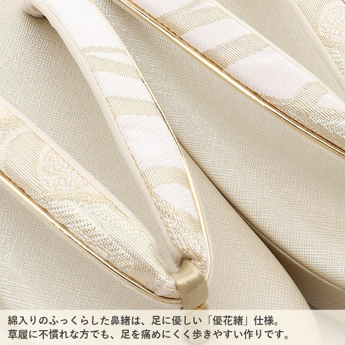 痛くなくて歩きやすい、初めての方にも安心の履き心地 草履バッグセット 留袖用 訪問着用 華三彩 キステオリジナル Sサイズ Mサイズ Lサイズ LLサイズ ゴールド シャンパンゴールド シルバー 吉祥紋 織り生地 2枚芯 日本製