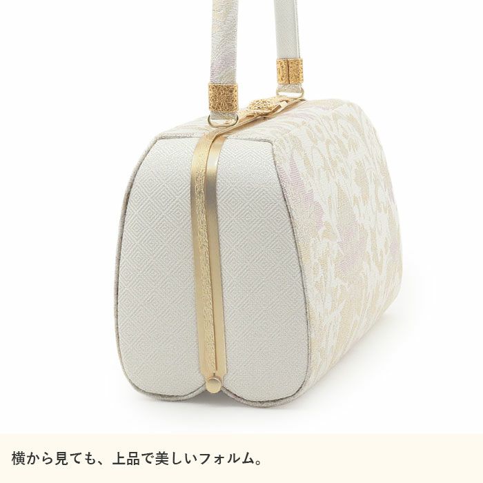 御茶席はもちろん 結婚式の黒留袖 色留袖や訪問着に 留袖 バッグ 利休バッグ 訪問着用 白 灰 ピンク 花紋 立涌 西陣織 正絹帯地 日本製 黒留袖 色留袖 訪問着 礼装用 フォーマル