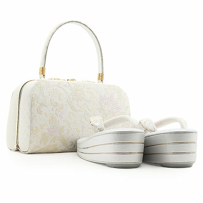 結婚式の黒留袖 色留袖や訪問着、振袖に合わせたい 草履バッグセット 留袖用 訪問着用 振袖用 草履バッグ 世美庵 M L 2 白 銀 ホワイト シルバー ピンク ブルー 花唐草 帯地 3枚芯 優花緒 日本製
