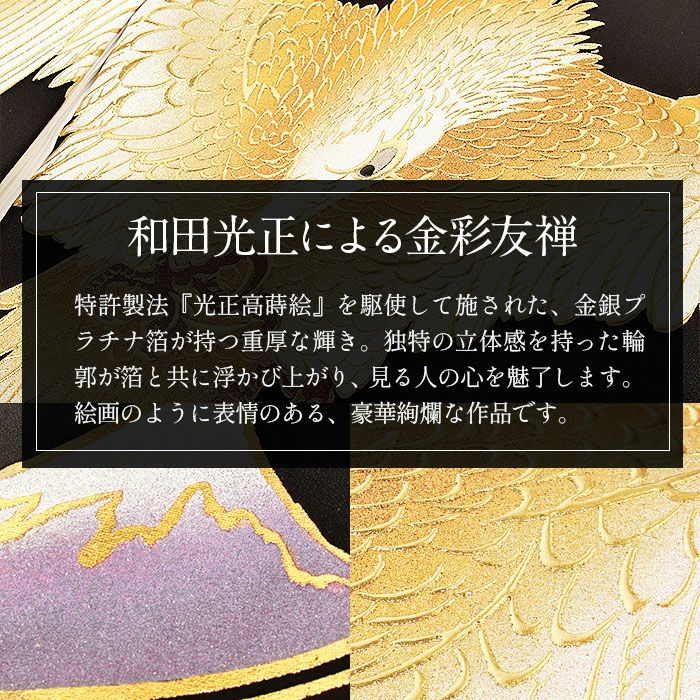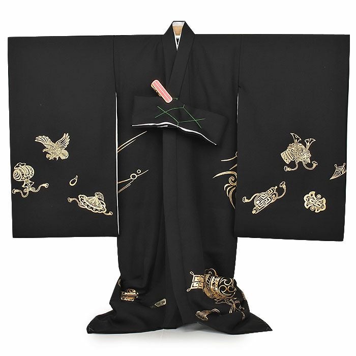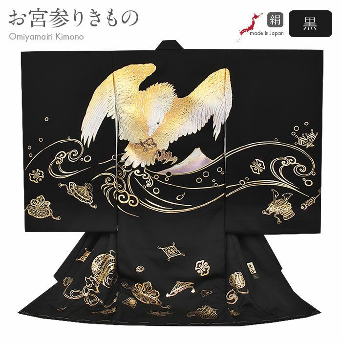 祝い着にふさわしい美しい正絹友禅 お宮参り 着物 男の子 産着 祝い着 黒 金 鷹 富士山 小槌 宝尽くし 吉祥紋 正絹 友禅 京友禅 金彩友禅 和田光正 本金 金彩 新品 箔使い 日本製