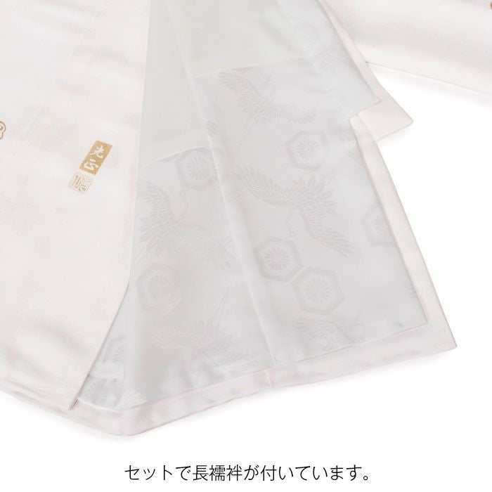 祝い着にふさわしい美しい正絹友禅 お宮参り 着物 男の子 産着 祝い着 白 クリーム 鷹 夫婦鶴 几帳 太鼓 松竹梅 軍配 武具 三つ矢 吉祥紋 正絹 友禅 金糸刺繍 金彩 新品 日本製