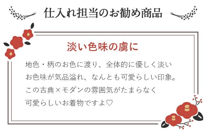 こだわりきもの専門店キステ 営業時間:11:00~14:00 定休日:土曜日、日曜日 税込11,000円以上のお買上げで【送料無料】もしくは【送料割引】させていただきます 電話でのお問い合わせはこちら 0568-44-2250