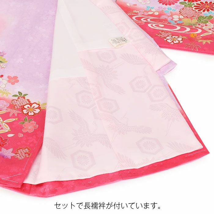 祝い着にふさわしい美しい正絹友禅 お宮参り 着物 女の子 産着 祝い着 薄紫 薄橙 濃桃 藤 鞠 牡丹 鹿の子 七宝 観世水 吉祥紋 正絹 友禅 刺繍 金彩 ぼかし 新品 日本製