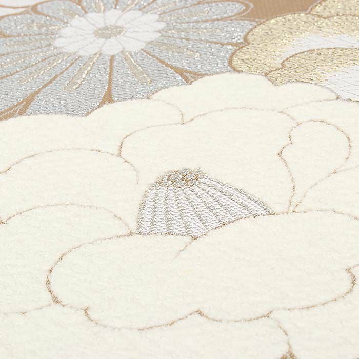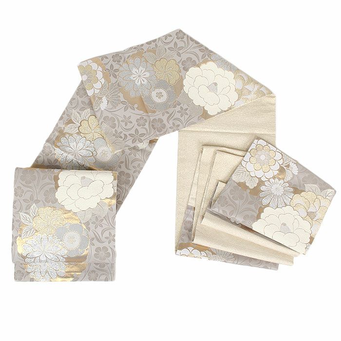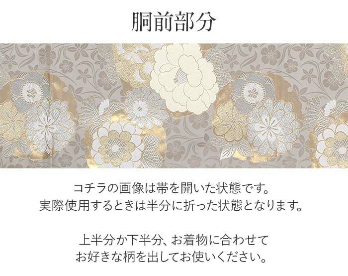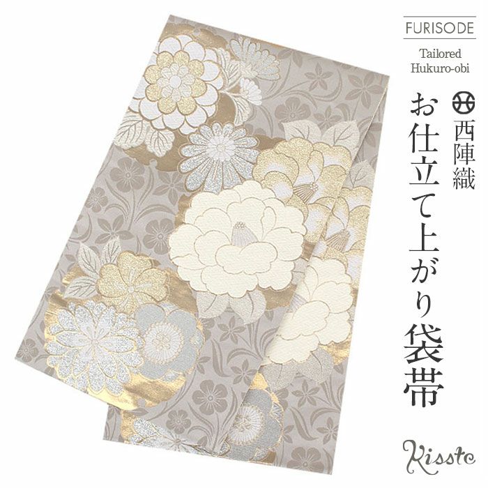 ≪在庫限り≫振袖 はもちろん 留袖 や 訪問着 にも 袋帯 振袖用 成人式 グレージュ 金 銀 雪輪 牡丹 華紋 西陣織 京都イシハラ 仕立て上がり 新品 帯単品 おび 結婚式 成人式