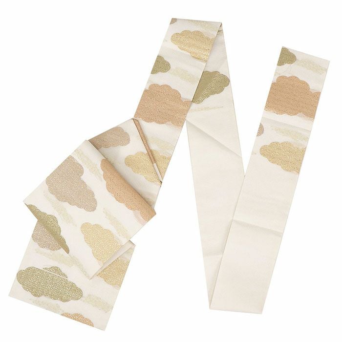 夏の小紋 紋紗 色無地 御召 などのお着物に アウトレット 名古屋帯 夏 夏名古屋帯 夏帯 生成り 雲取り 七宝 絽 西陣織 ふくい織物 普段用 九寸 仕立て上がり 絹 未使用 新品