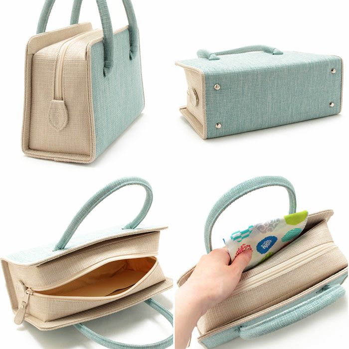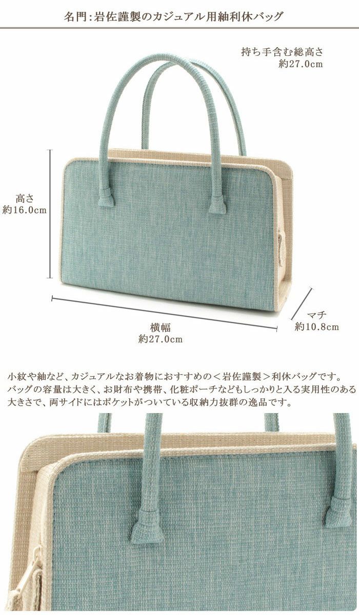 ≪在庫限り≫小紋 紬 色無地 御召 などのお着物に 利休バッグ 普段着用 カジュアル用 バッグ 水色 ライトブルー ベージュ 岩佐謹製 紬 日本製 お茶席 茶会 利休 色無地 小紋 御召 紬