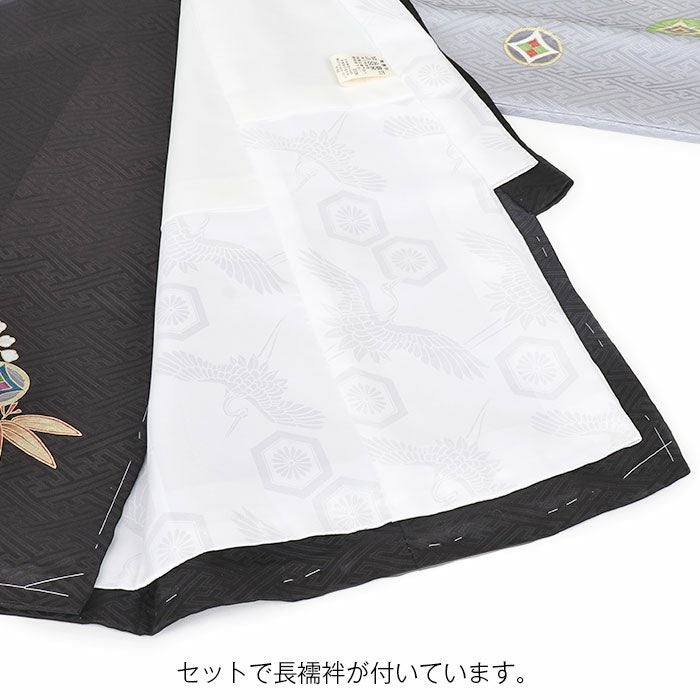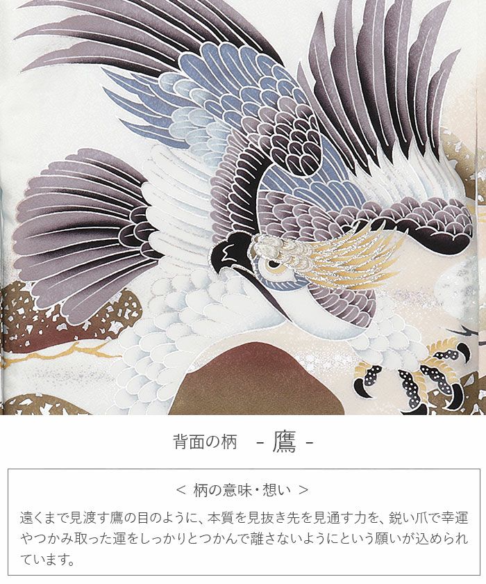 ≪在庫限り≫ 男の子 赤ちゃんのお宮参りの着物 お宮参り 着物 男の子 絹 正絹 掛け着 産着 黒 鷹 兜 甲冑 武具 色紙紋 飛翔 松竹梅 三段松 吉祥紋 友禅 刺繍 金彩 金たたき 新品 販売 購入 きもの 祝い着