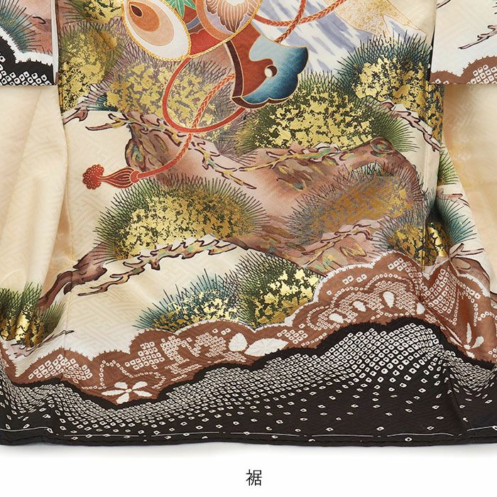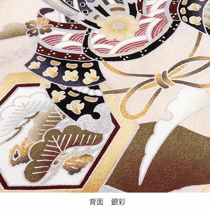 ≪在庫限り≫ 男の子 赤ちゃんのお宮参りの着物 お宮参り 着物 男の子 絹 正絹 掛け着 産着 淡黄 兜 富士山 小槌 針松 疋田風鹿の子 吉祥紋 友禅 金駒刺繍 金銀刺繍 金彩 箔 新品 日本製