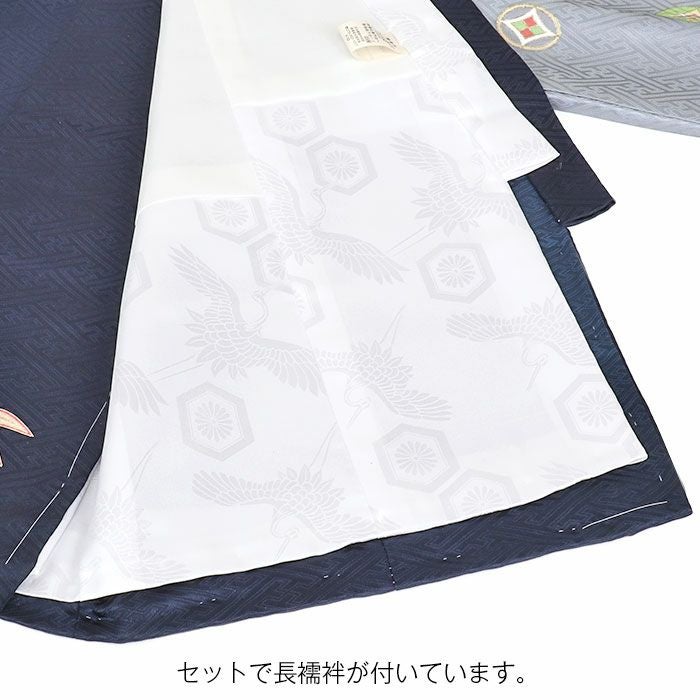 ≪在庫限り≫ 男の子 赤ちゃんのお宮参りの着物 お宮参り 着物 男の子 絹 正絹 掛け着 産着 紺 青灰 鷹 兜 桐 松 竹 宝尽くし 亀甲 吉祥紋 友禅 刺繍 金彩 ぼかし 新品 日本製