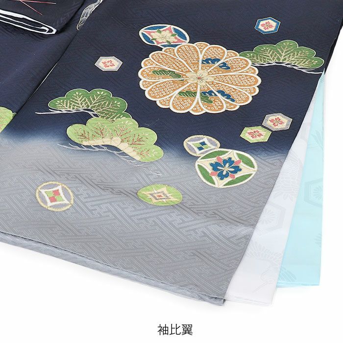 ≪在庫限り≫ 男の子 赤ちゃんのお宮参りの着物 お宮参り 着物 男の子 絹 正絹 掛け着 産着 紺 青 鷹 兜 甲冑 武具 色紙紋 飛翔 松竹梅 三段松 吉祥紋 友禅 刺繍 金彩 金たたき 新品 販売 購入 きもの 祝い着