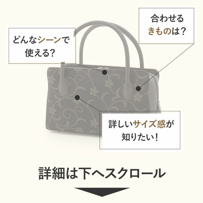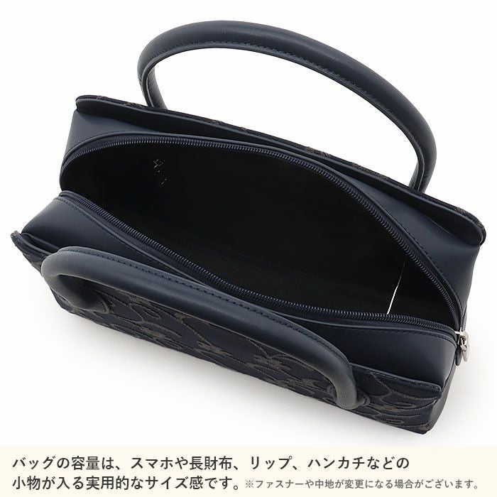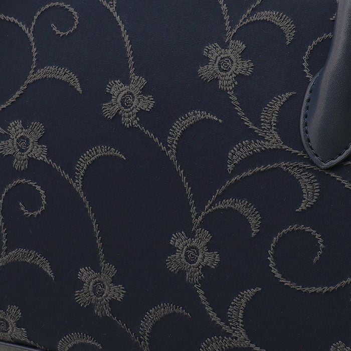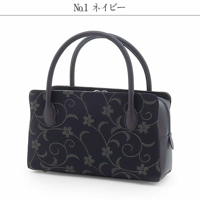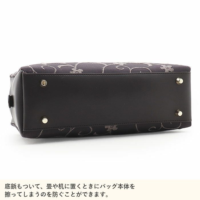 小紋 紬 色無地 御召 などのお着物に 利休バッグ 普段着用 カジュアル用 バッグ 牛革 刺繍 全2色 ネイビー ブラウン 紺 茶 花唐草 百華園 お茶席 茶会 利休 色無地 小紋 御召 紬