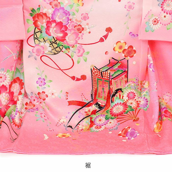 ≪在庫限り≫ 女の子 赤ちゃんのお宮参りの着物 お宮参り 着物 女の子 絹 正絹 掛け着 産着 蛍光ピンク 赤 花鼓 紙風船 鞠 桜 梅 花丸 青海波 七宝 吉祥紋 友禅 金駒刺繍 金彩 ぼかし 新品 販売