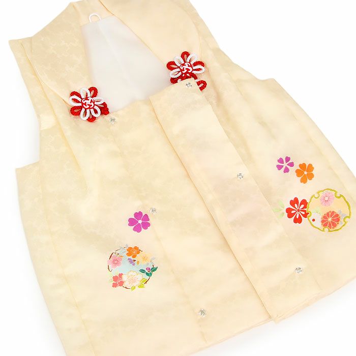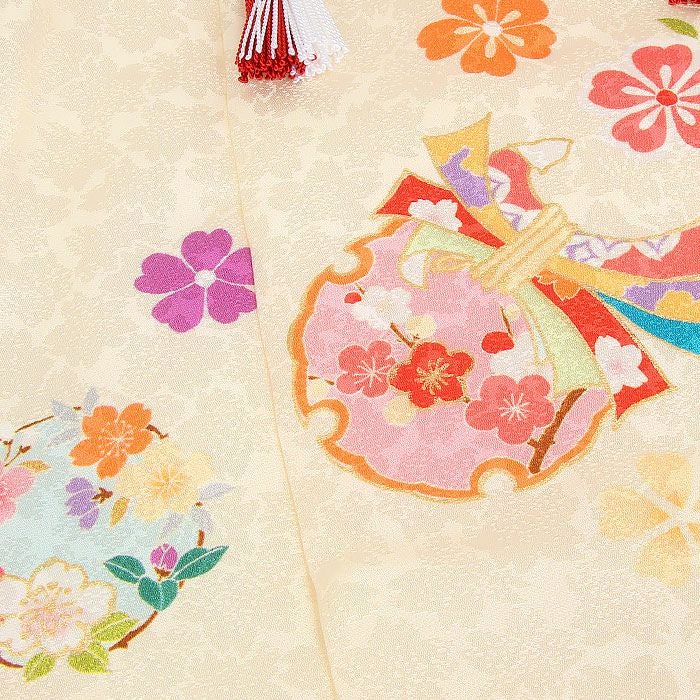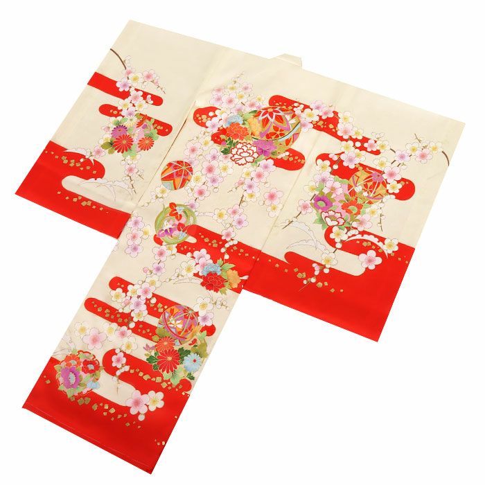 ≪在庫限り≫ 女の子 赤ちゃんのお宮参りの着物 お宮参り 着物 女の子 絹100% 正絹初着 掛け着 産着 薄黄 クリーム 赤 毬 牡丹 桜 万寿菊 花の丸 エ霞 吉祥花 友禅 金駒刺繍 金彩 新品 販売 日本製