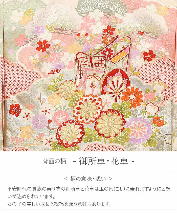 女の子 赤ちゃんのお宮参りの着物 産着 お宮参り 着物 女の子 絹 正絹 掛け着 産着 モダン 薄橙 桃 赤 御所車 吉祥花 友禅 経済産業大臣指定伝統的工芸品 金駒刺繍 金銀彩 箔使い 新品