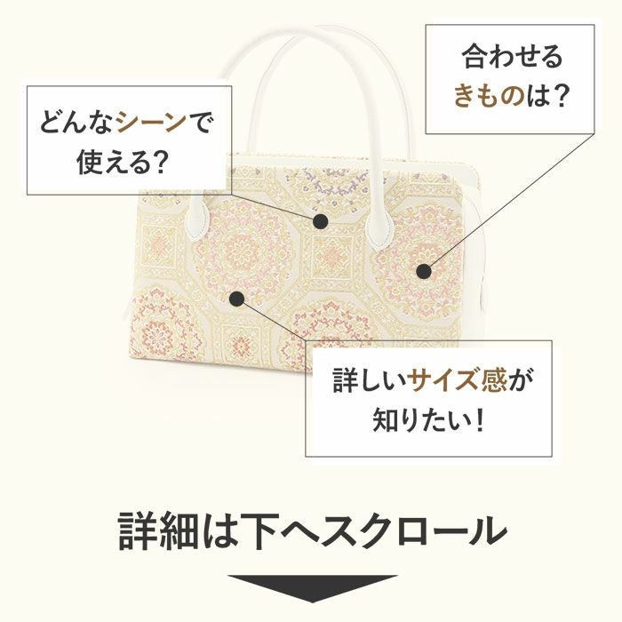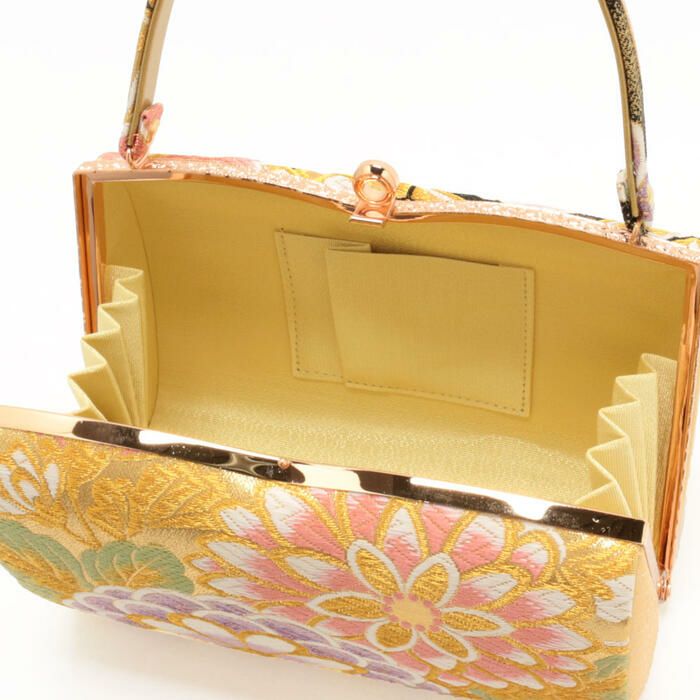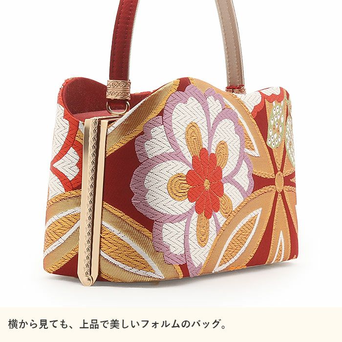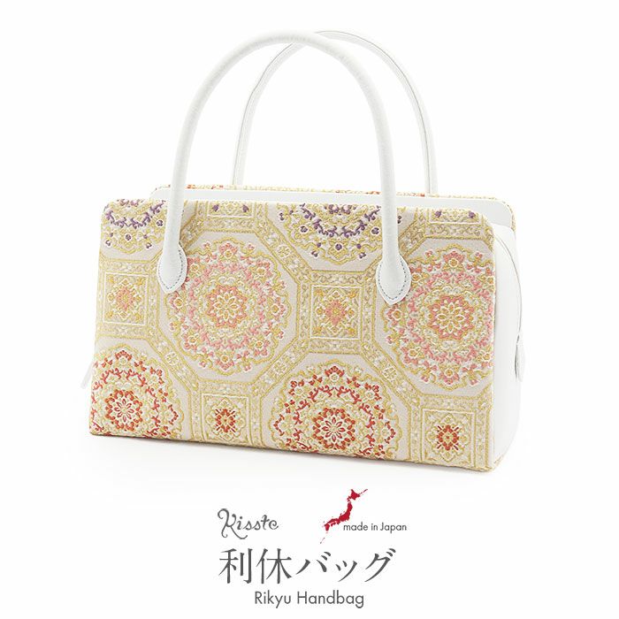 ≪在庫限り≫ あらゆる礼装に寄り添う西陣織の気品 利休バッグ 白 金 ピンク 橙 紫 亀甲 華紋 西陣織 正絹帯地 日本製 訪問着 礼装用 フォーマル 色無地 付け下げ 結婚式 お宮参り 七五三 和装バッグ フォーマル