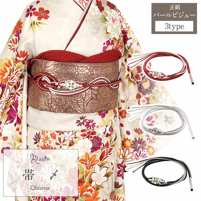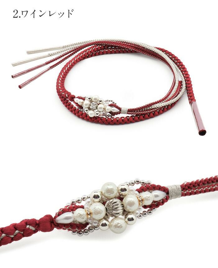 可愛くまとめたい日に頼れる一本 帯締め 成人式 振袖用 成人用 ブラック ワインレッド ホワイト 黒 赤 白 3色 パール パールビーズ 正絹 シルク 日本製 振袖