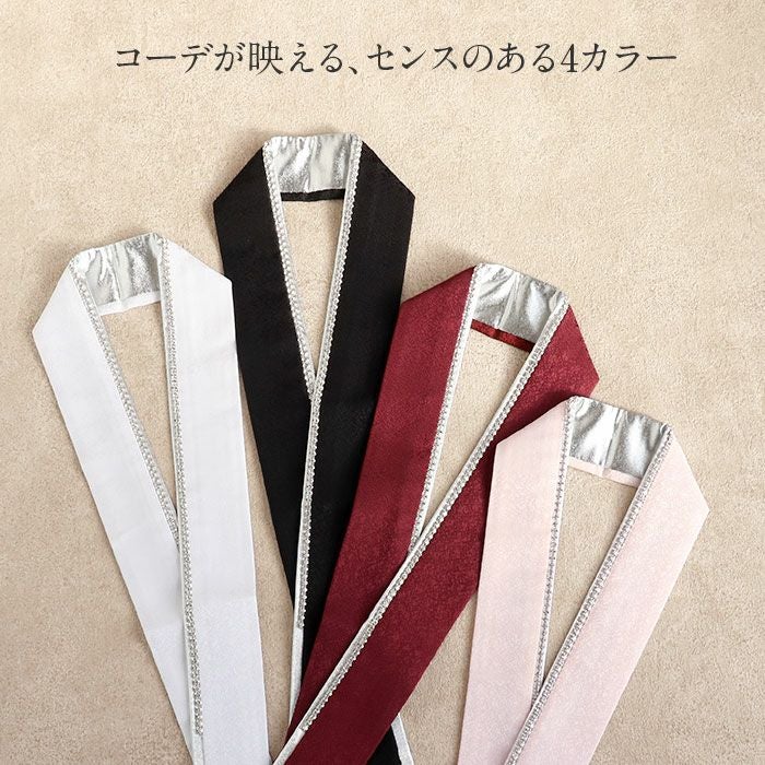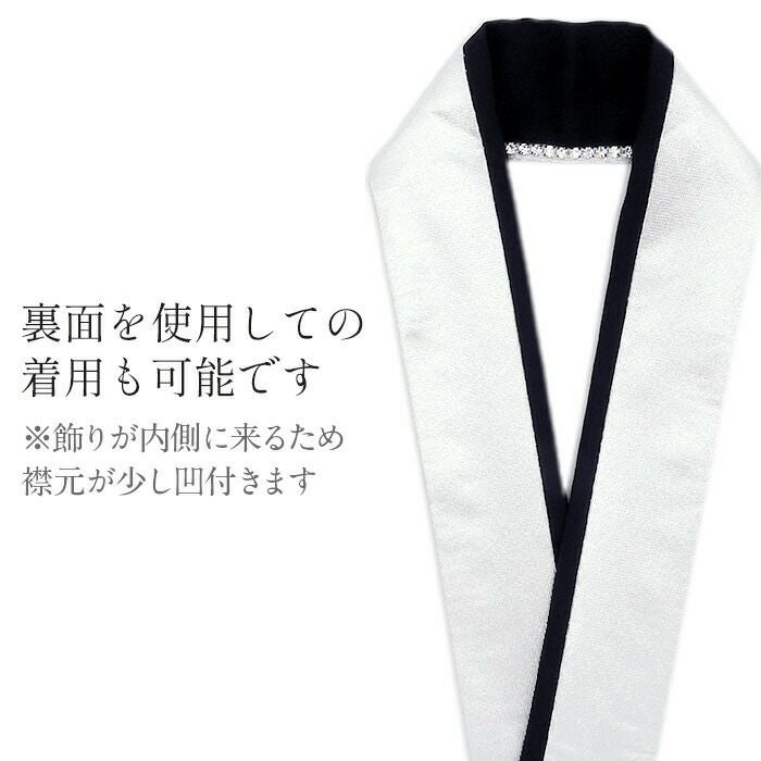 成人式や結婚式の華やかな振袖や卒業袴に 重ね衿 成人式 重ね襟 振袖 振袖用 成人用 桃 赤 黒 白 ピンク エンジ ブラック ホワイト ラインストーン 全4色 日本製 正絹 銀 シルバー リバーシブル メール便対応可