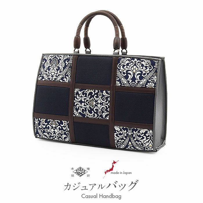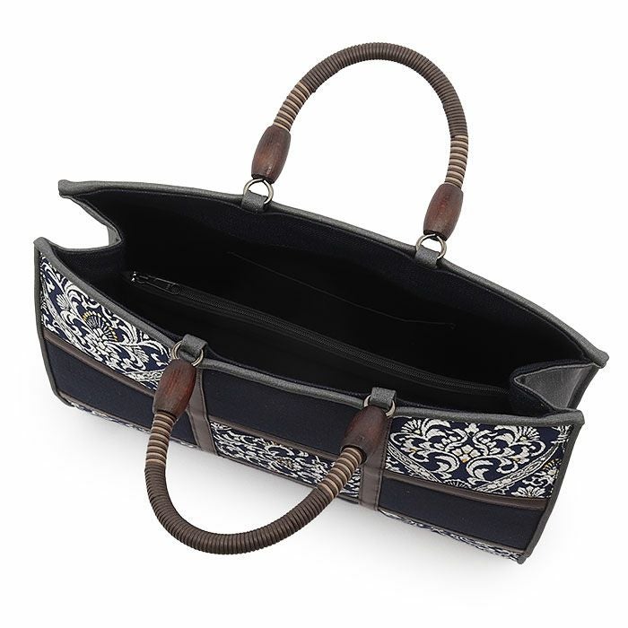 ≪在庫限り≫ 華三彩 博多織のカジュアルバッグ お洒落バッグ 普段用 華三彩 博多織 博多 絹 紺 グレー 白 茶 アラベスク 日本製 トート おしゃれ 伝統工芸品 カジュアル用
